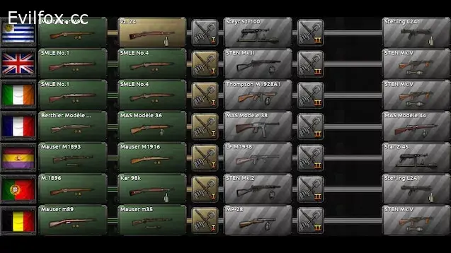 The "Unique Infantry Equipment" mod for Hearts of Iron 4 adds to the game many models of small arms, which were used by all countries from 1918 to 1946.