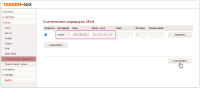 - Перейдите в раздел Сеть → Статические маршруты → нажмите кнопку Добавить → укажите параметры маршрута и нажмите кнопку Сохранить: