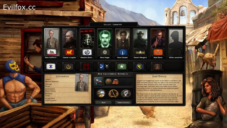 - 4 new ideologies representing the nature of groups found in Fallout: Elites, Intellectuals, Ruler, and People.