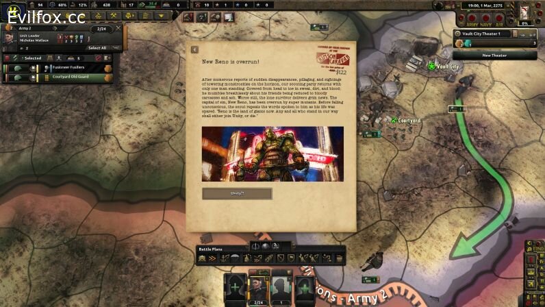 Old World Blues is a total overhaul for Hearts of Iron IV: starting in the year 2275 and set in the Fallout universe. Experience the postapocalypse like never before with a dynamic war system that ensures that the AI nations act on their own, respond to aggression, and strike when their opponents are weak. Twenty nine national focus trees—three of which are generic—keep the game exciting as numerous powers contest in a battle to control the Wasteland. With the use of “Historic Focuses”, you get to decide the path famous Fallout factions took, directing generic nations and changing history as you see fit.