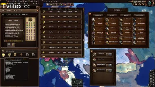 As so many other mods offer the prospect of map painting, our forte is quite straightforward: rather than paint the map of the world to your own devices, you write the book of your nation. You will race the Great Powers for prestige and influence, challenge the political might of their realms, and set your place on the world stage. From a choice of the largest variety of historically accurate and detailed nations, you will guide yours through a tumultuous and vigorous era. Your political, economic, and diplomatic decisions will allow you to change the fate of millions, as you mold your nation into a Victorian powerhouse.