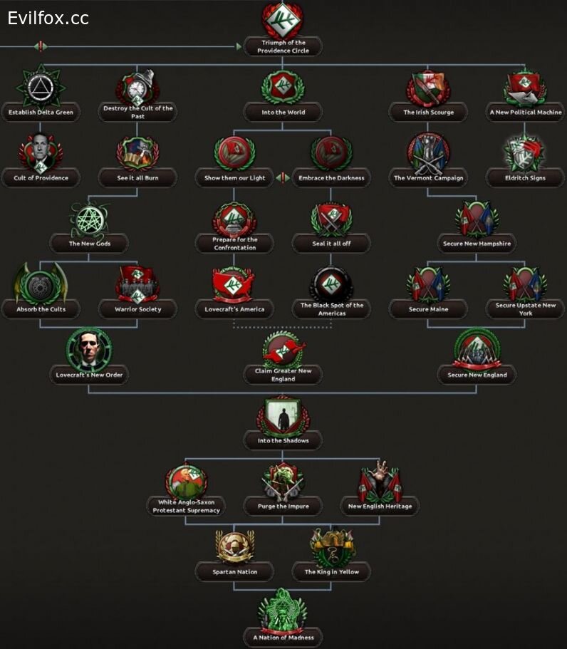 - New England (Lovecraft, Monarchist, Prohibitionist and Quaker trees)