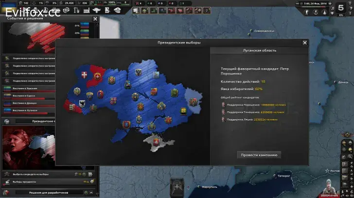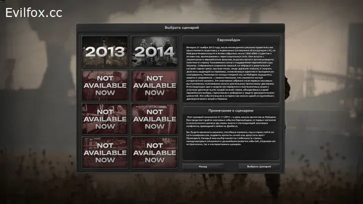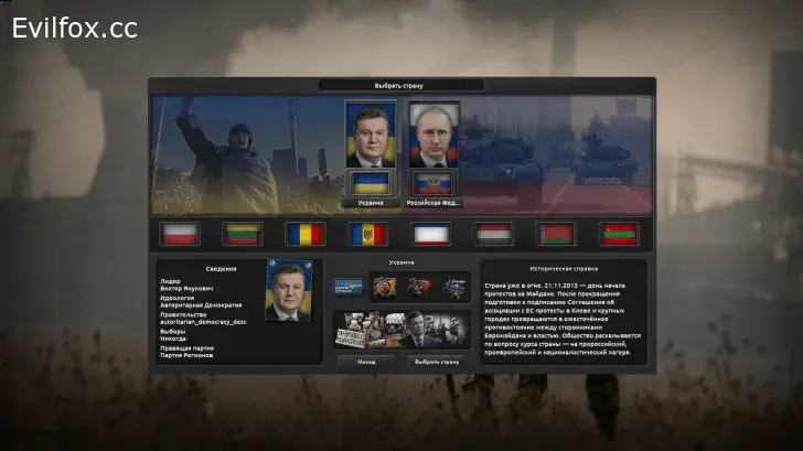 This mod introduces a historically grounded campaign set during Ukraine's 2013–2014 political crisis, beginning on November 21, 2013—the day Euromaidan protests erupted in Kyiv after the government suspended the EU Association Agreement. Players navigate escalating unrest, the February 2014 Revolution of Dignity, the annexation of Crimea, and the outbreak of armed conflict in Donbas—choosing to either defend Ukraine's territorial integrity or lead a separatist movement in eastern regions.