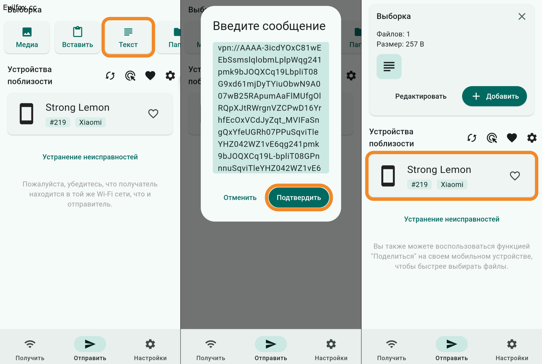 - Откройте приложение LocalSend на втором устройстве и нажмите кнопку Текст.