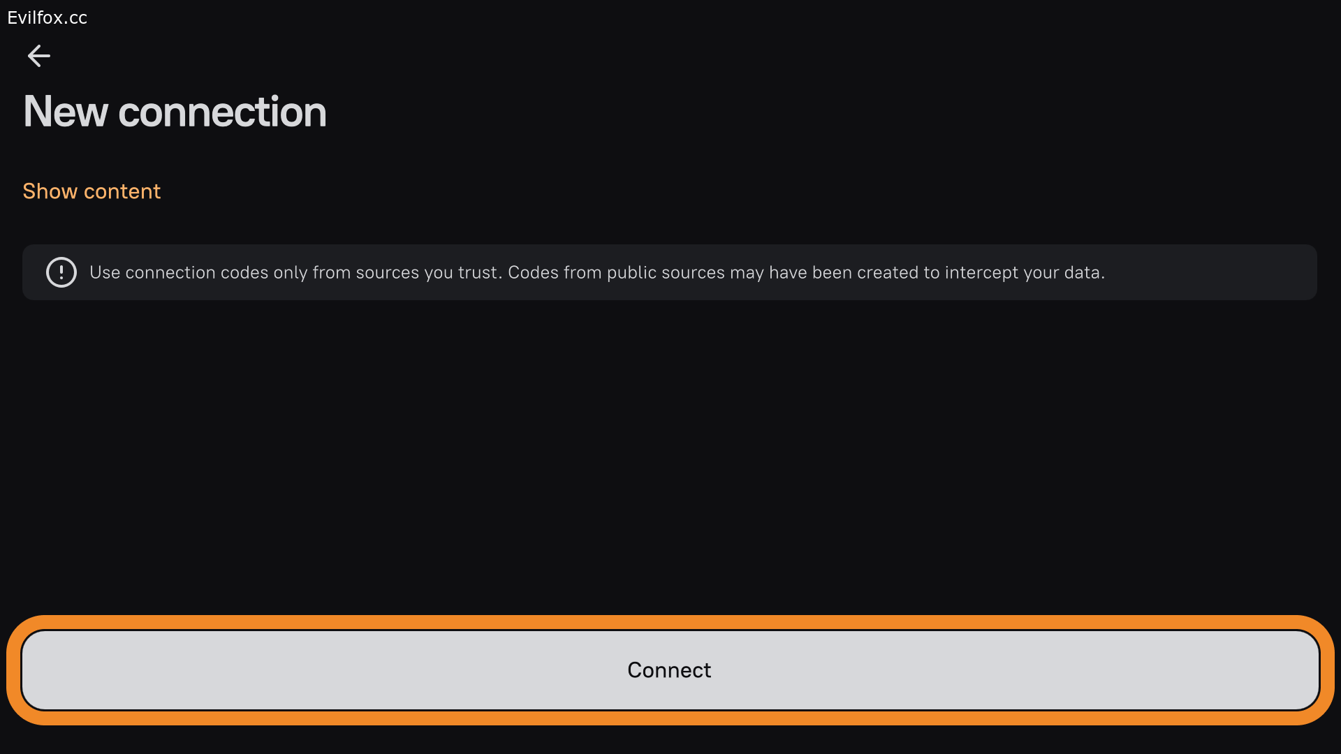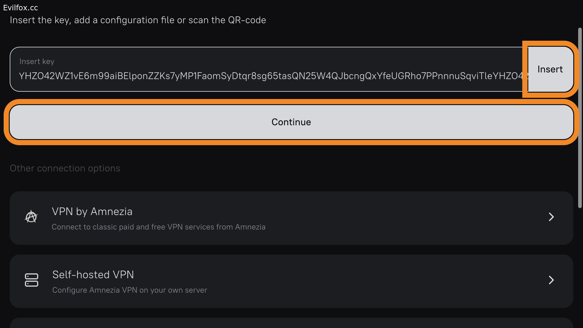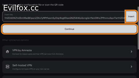 - Нажмите Insert справа от поля ввода ключа, затем Continue → Connect.