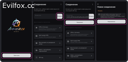 В приложении AmneziaVPN есть несколько способов создания подключения: