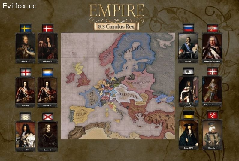 Empire is set in the early 18th century and explores both the War of the Spanish Succession and the Great Northern War, featuring great figures in history such as Louis XIV, Peter the Great & Carolus Rex. This mod features custom focus trees, ideas, a bunch of events and a lot more.