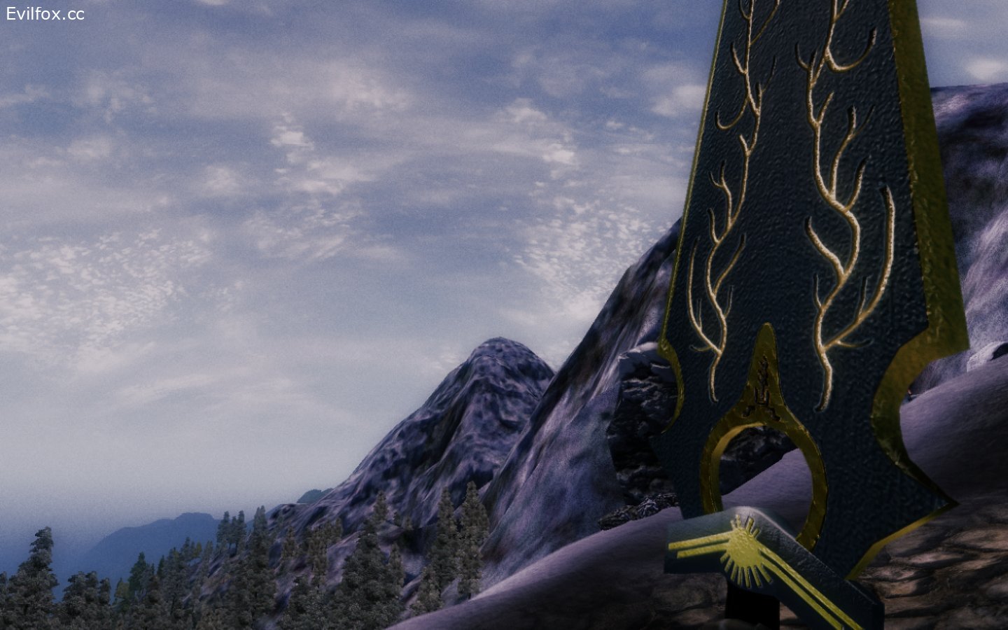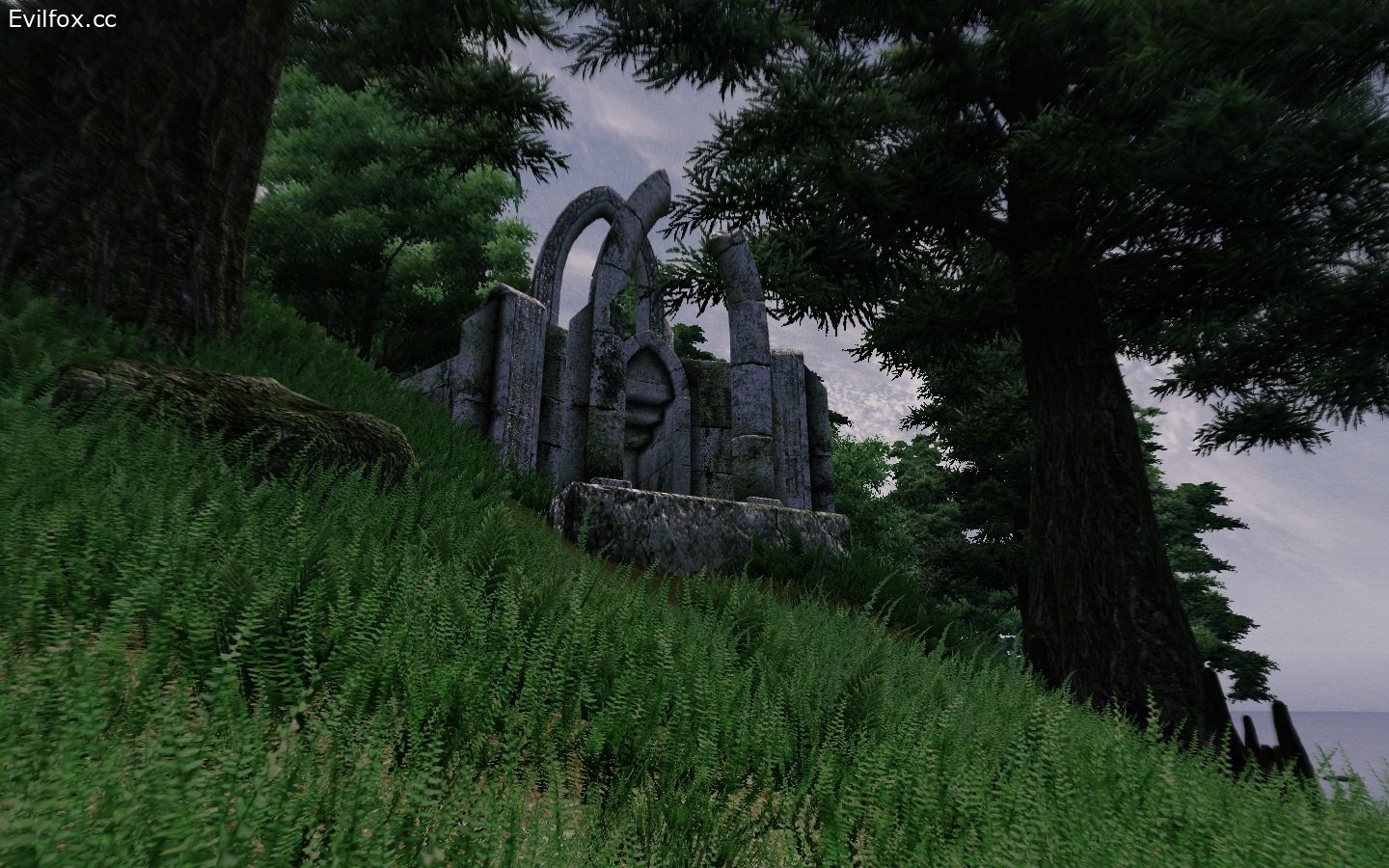 Плагин добавит одноручный меч "Солнечный воитель" и айлейдские руины, в которых меч и находится. Вход в развалины можно обнаружить, если пойти по берегу на юг от Лейвина, как показано на скриншоте. Точное место входа показать не удалось - границы игровой карты не позволили, но и так будет сложно пройти мимо, неподалеку от ворот в руины бродит имперский конь ( и что он тут забыл..? ). Ах да, еще необходимо отключить границы Сиродиила, иначе вы упретесь носом на расстоянии вытянутой руки от двери.