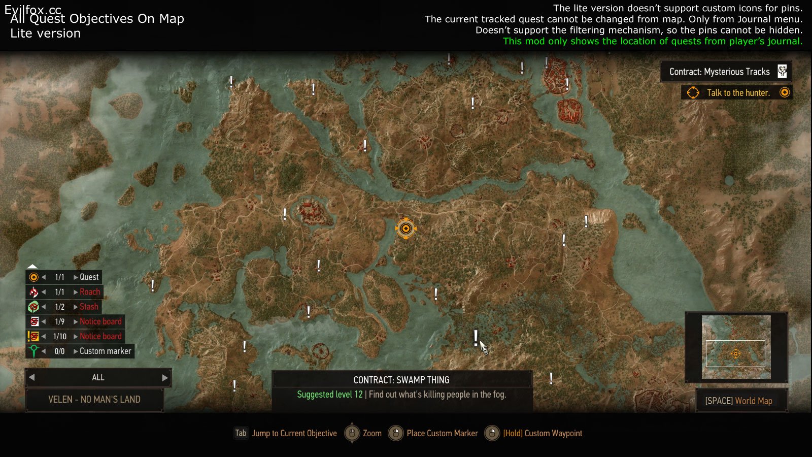 Показывает на карте все цели для всех активных квестов игрока.