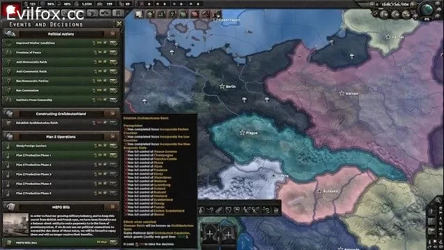 - New political tree that allows you to either expand your fascist grip on Germany or arrest Hitler and change Germany's politics. Each political tree is fleshed out with respective events, decisions, ideas, and foci that allow for the shaping of pre or post war Europe.