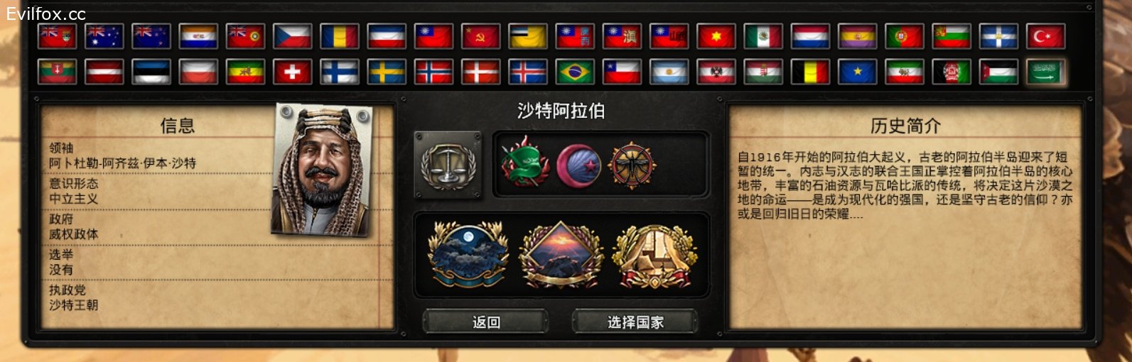 ————Welcome to play Saudi Arabia Remastered! This mod adds a unique Saudi cabinet and generals, original-style focus character icons, and more interactive event resolutions.