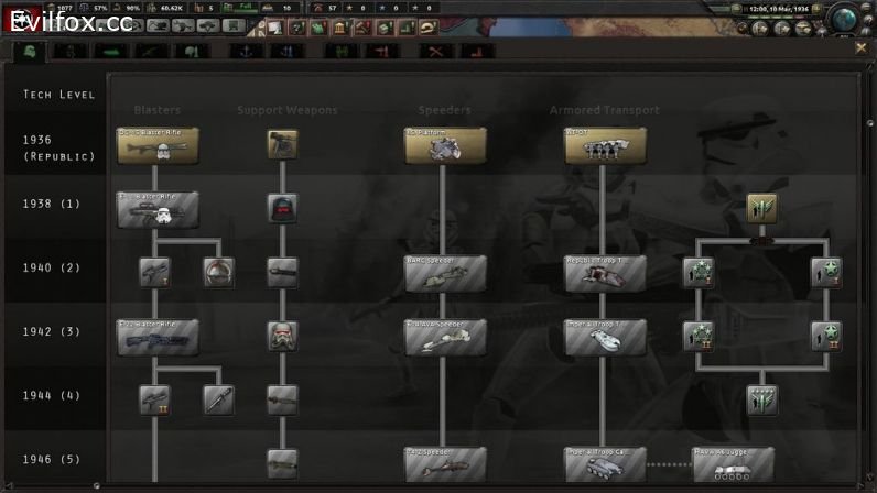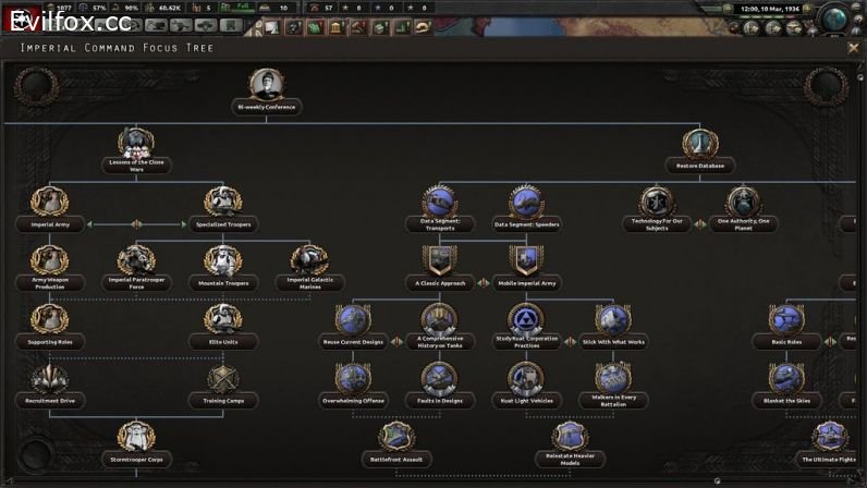 The Empire has technological superiority over other Nations. Stormtroopers are vastly superior to any infantry in the game, but you start with just a few divisions.