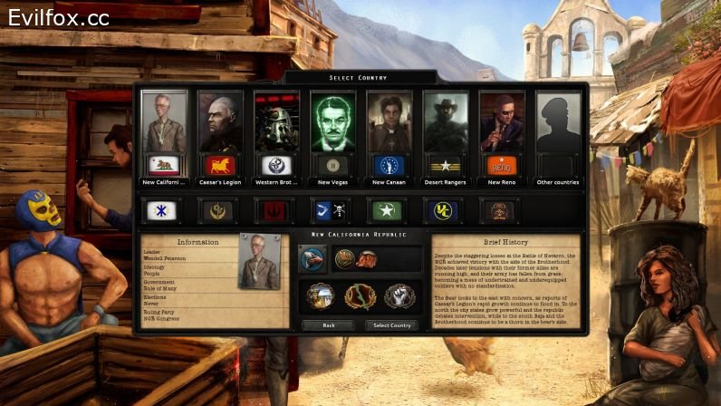 - 4 new ideologies representing the nature of groups found in Fallout: Elites, Intellectuals, Ruler, and People.