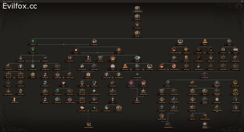 - 3 generic focus trees representing different groups in Fallout: raiders, tribals, and settlers