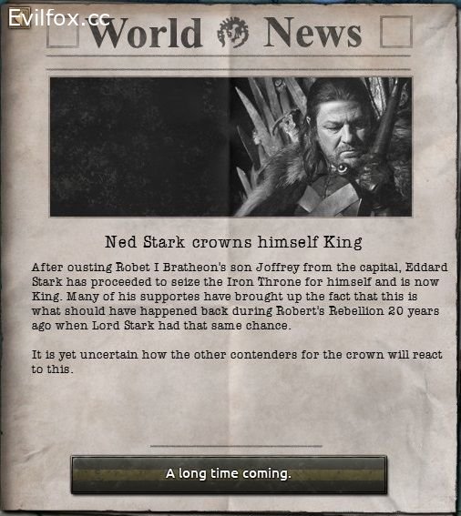 In the last few years the world has seen some major events break out in Westeros. King Joffrey now has complete control over the realm, supported by the Lannisters and the Tyrells. Roose Bolton has been declared Warden of the North and is keeping the other houses under control with an iron fist. With the Stark family fleeing to Skaagos the only glimmer of resistance comes from the remaining Tully rebels in the Riverlands. Whatever happens next will surely be bad news for the rest of Westeros.