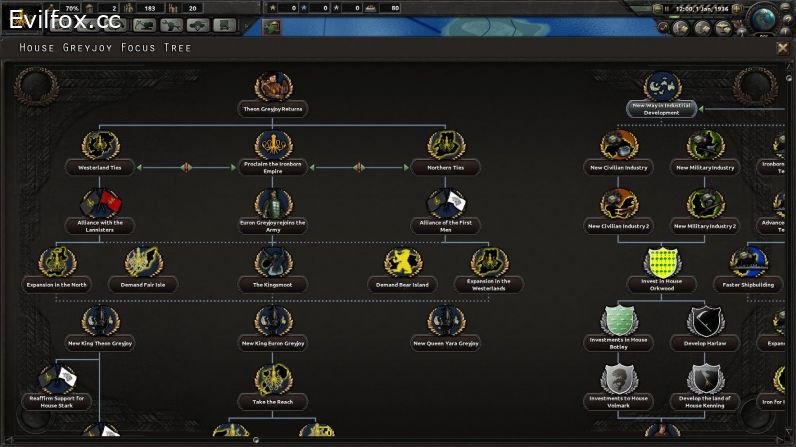 A total conversion that modernizes the world of Game of Thrones and bring it into the world of HoI4. Fight in the War of Five Kings, hold back the Wildlings, unite the old Valyrian lands, invade the Iron Islands or wage war against the Dothraki Khalassars. The choice is yours...