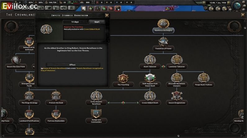 The year is 1936 and nearly twenty years have passed since Robert's Rebellion overthrew the Mad King and established a new order in Westeros. Times are changing, however. Ever since House Stark chose to isolate itself from the politics of King's Landing, House Lannister has positioned itself in a very comfortable position of power and many houses are feeling uneasy about this. The Dornish, in particular, have seemingly not forgotten their atrocities of the rebellion and their loyalty is very questionable. Then, there is House Tyrell, who are eager to re-establish themselves on the big scene. And, of course, there are two younger Baratheon brothers, Renly and Stannis, who also seem to have their own agenda. Will King Robert Baratheon and Hand of the King Jon Arryn be able to maintain order in Westeros?