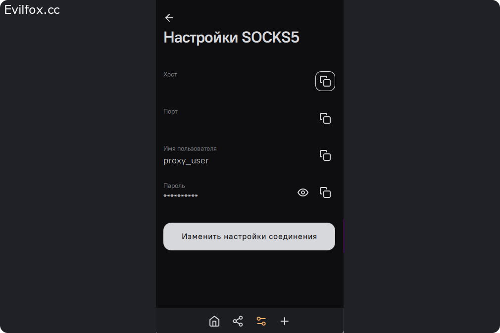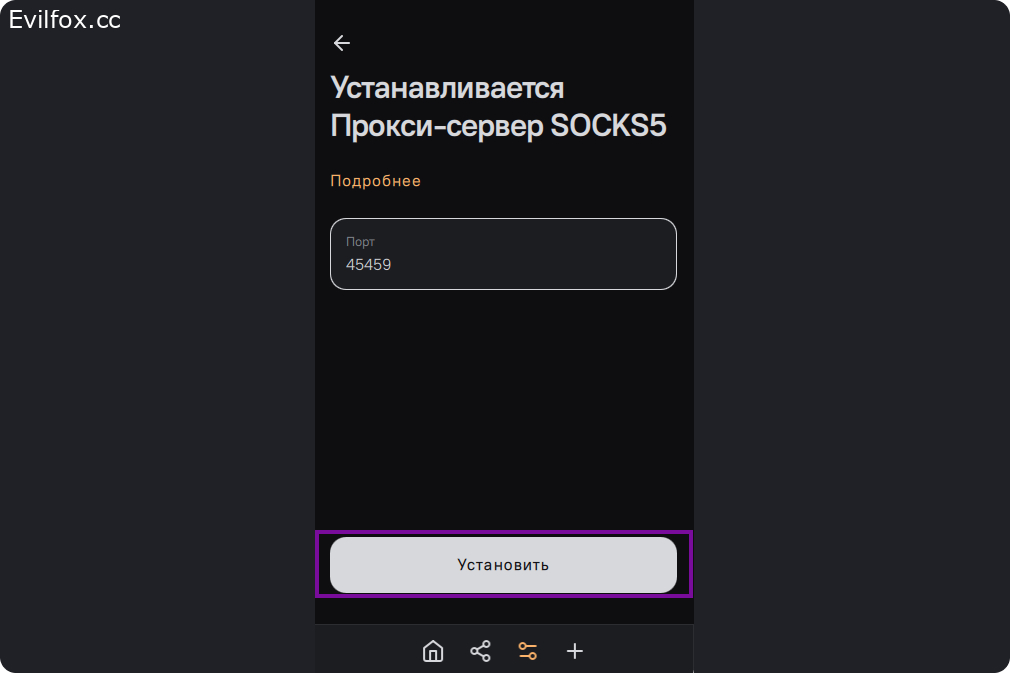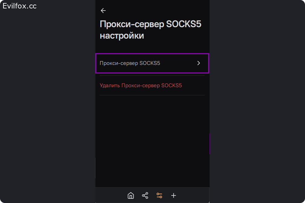Далее "Прокси-сервер SOCKS5".