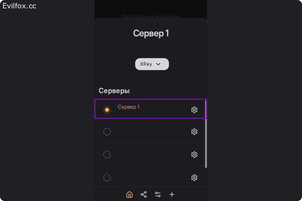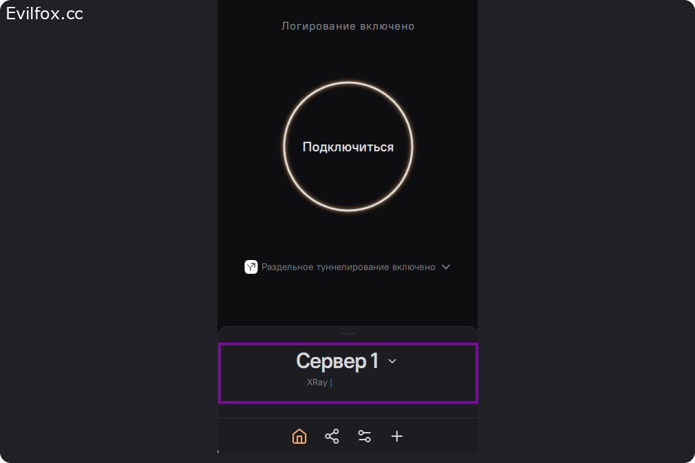 Нажмите на название сервера на главном экране