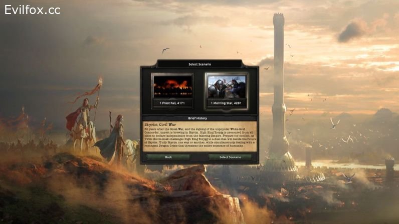 The Thalmor-ruled Third Aldmeri Dominion is preparing to take on the remainder of the unstable Cyrodiilic Empire, now under Titus Mede II. Will Mer triumph over Man in total war, or shall the Empire triumph once more? Take charge of one of the two giants and win the coming Great War, or head into the new era as one of the newly independent regional powers, such as An-Xileel-ruled Argonia, or one of the Houses of Morrowind. Perhaps head East, and take control of one of the 4 civilisations of Akavir? The choice is yours.