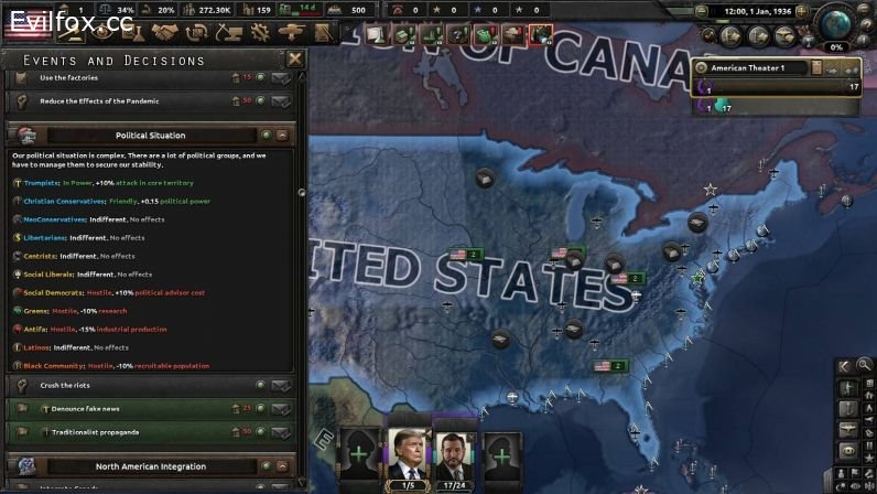 -A new focus tree for the United States! Go with Joe Biden or Donald Trump, start a second American civil war, establish the Fourth Rome, proclaim the American Kaiserreich, embrace Radical Centrism, start a new American revolution, or embrace anarcho-capitalism!
