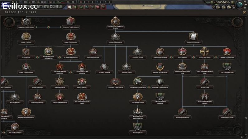 • Fascist Greece, allowing the restoration of old Greek territories alongside further expansion, or accepting foreign intervention