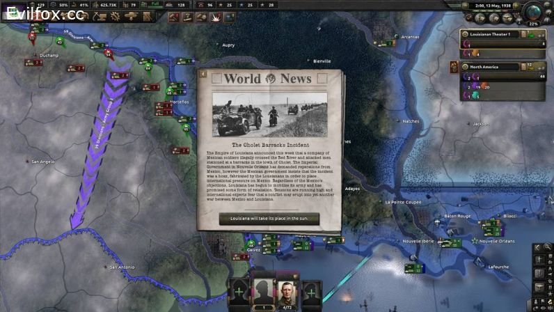 Destin Oublié is an Alternative History mod for Hearts of Iron IV which explores the question: "What could have happened if Napoleon Bonaparte hadn't sold the Louisiana colony to the United States of America in 1803 ?" The goal of this project is to create a historically plausible, balanced, and fun to play Axis counterweight to the United States; a country which becomes an unstoppable juggernaut in almost all vanilla Hearts of Iron games.
