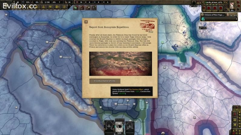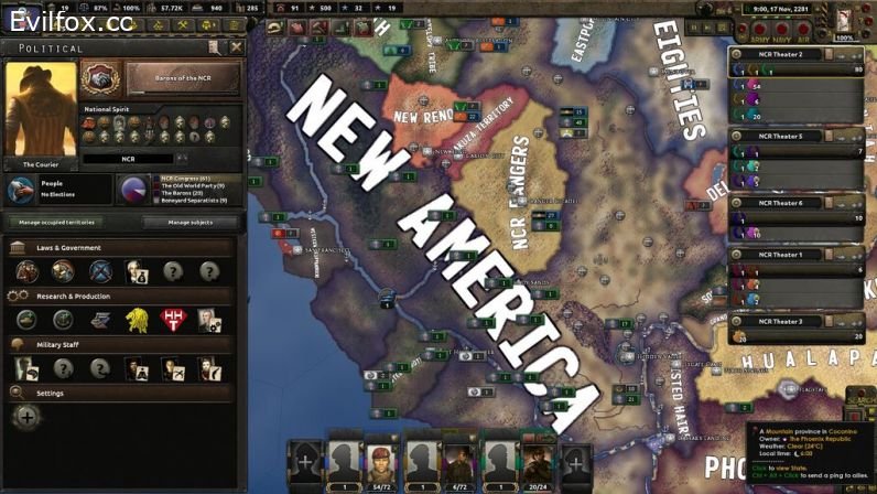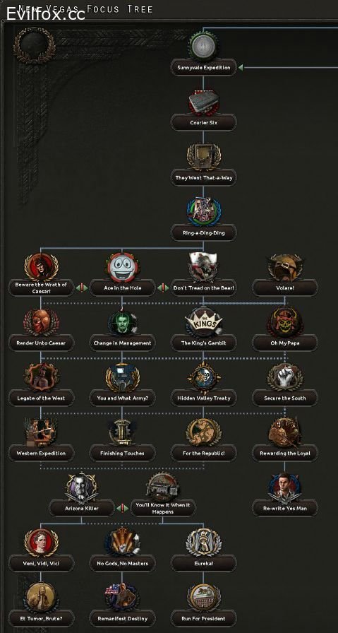 In the Old World Blues mod, The Courier's major involvement in the war for Hoover Dam had been cut out, and some story elements rewritten to exclude him (presumably so that the mod would fit the gameplay of HOI4). Well I re-rewrote The Courier back into mod, with a few key alterations to the New Vegas storyline to facilitate HOI4 gameplay.