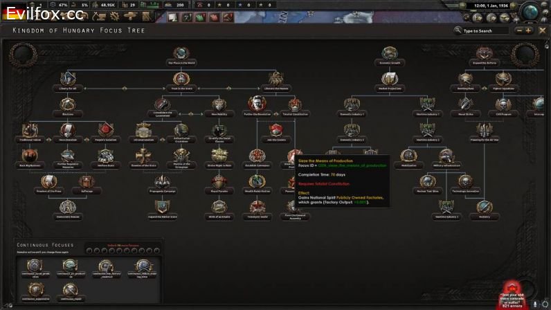 The Last Bastion currently contains five complete national focus trees as well as a brand new generic tree with more on their way. Currently in-game are focus trees for: