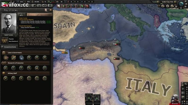 Okay, silly introductions aside, let's talk business. In this mod, you take control of the fictional country of North Africa and guide it through WW2. This is NOT an OP mod, at least it isn't intended to be. No focuses that give you 20 military factories, 10 million manpower, or anything like that. That said, it does push the boundaries of what is realistically feasible for a country in this region during this time period (you actually have some factories). My goal was to make this country fun to play and be able to hold its own against the major powers, without being stupid easy.