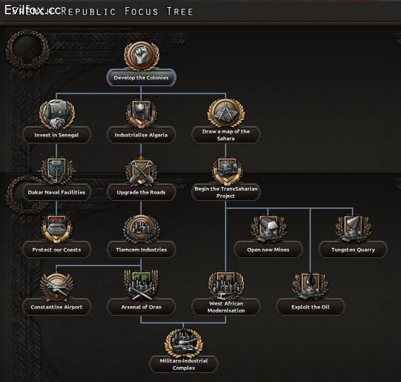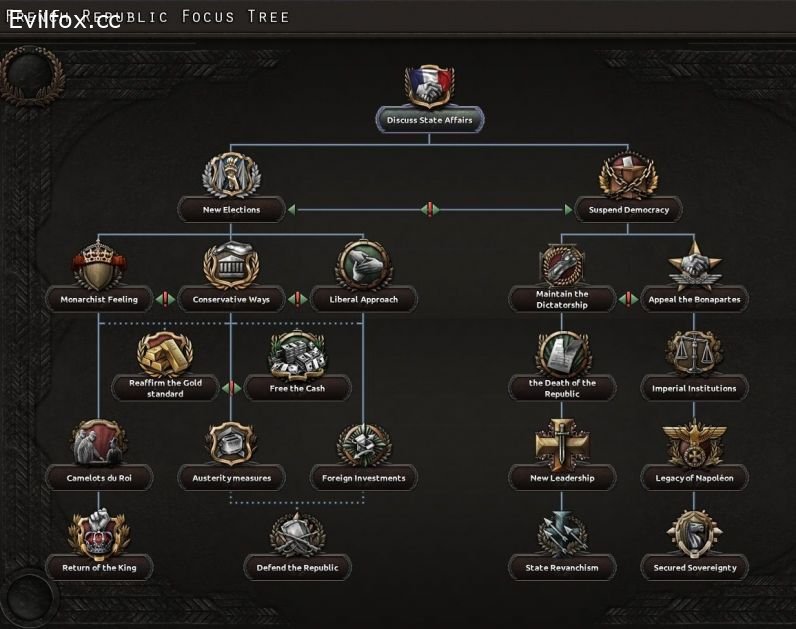 Go through the various possibility that offer the National French Focus Tree: