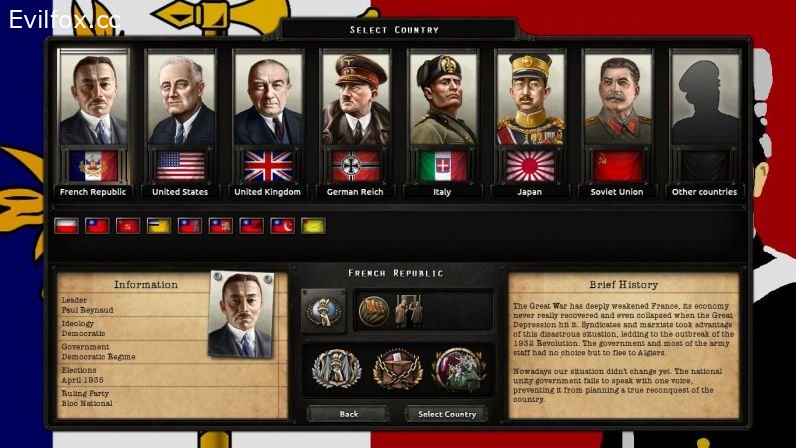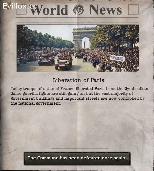 The Second Commune & Exiled France is a mod which takes place in a world where a trotskyst revolution succeed in 1932 in France, forcing the old guard to flee to its colonies.