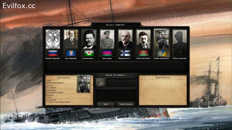 The year is 1936, and Eastern Europe has fallen into chaos. The Ukrainian Warlords have grown rowdy and push for unity, the vast steppes of Sibir face threat from the naval power of Vladivostok and the hermit nation of the Uralic Socialist Republic, remnants of the Bolsheviks from the Civil War, and Russia wishes to regain her former glory.