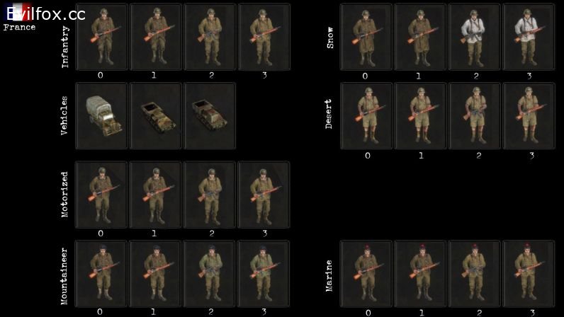 A set of graphic enhancements to French uniforms and weapons for the game Hearts of Iron 4.