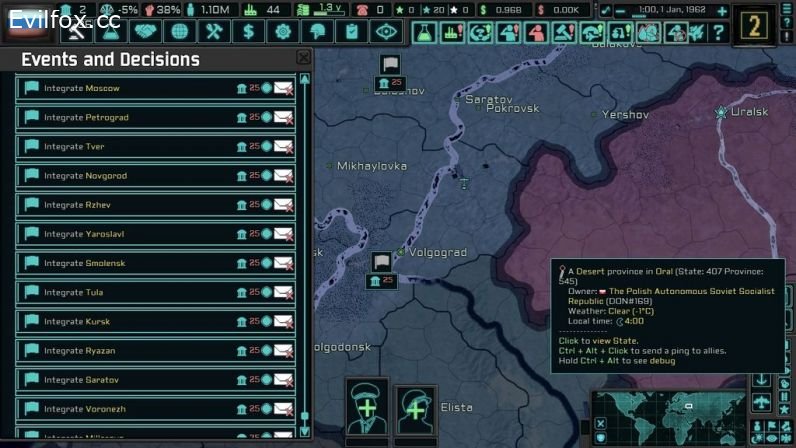 • Decisions to integrate Muscovy, Ostland, Caucasia, Ukraine, Central Asia, Vladivostok and more added.