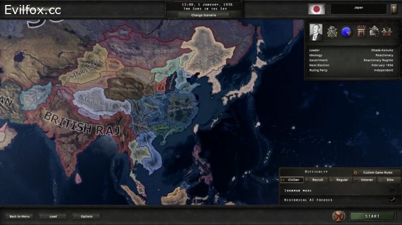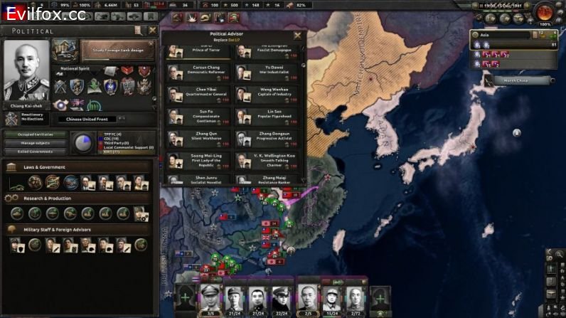 - Japan, China, Communist China, Sinkiang, Indochina, Mongolia, Manchukuo, East Hebei A.C. (Will be Collaborationist China later)