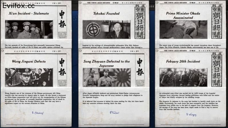 New historical nations are added in the Asia along with unique skins, events, focus trees, decisions, unique tech and dynamic news interface. Asian majors, namely China and Japan, have been reworked extensively. More extensive and historical focus trees are added along with new advisors, events, and decisions. A great amount of new graphics are added, and efforts are made to ensure the icons have a quality and style similar to the vanilla ones.