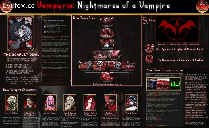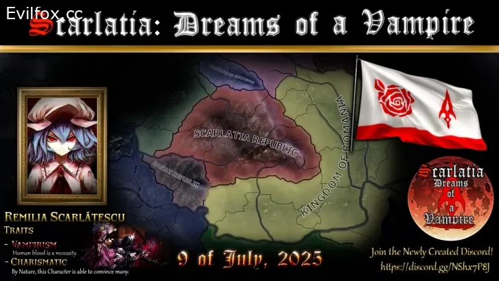 "Scarlatia: Dreams of a Vampire" is a Hearts of Iron 4 mod set in an alternative world where an enigmatic leader arose from hiding, triggering the abrupt collapse 'Great Union Day'. What followed was a bloody civil conflict. Called the First Carpathian War culminating in the independence of Transylvania, Banat Republic and the survival of the Bolshevik revolution of Hungary within the Carpathians plains.