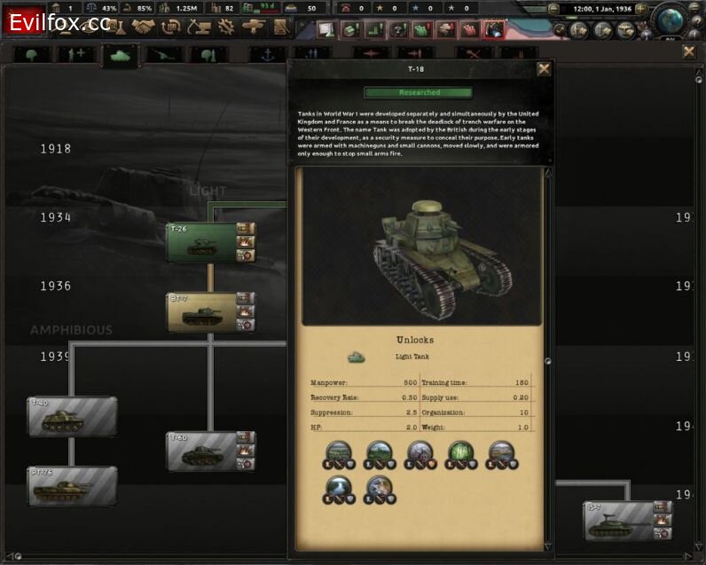 - Early tanks for major nations