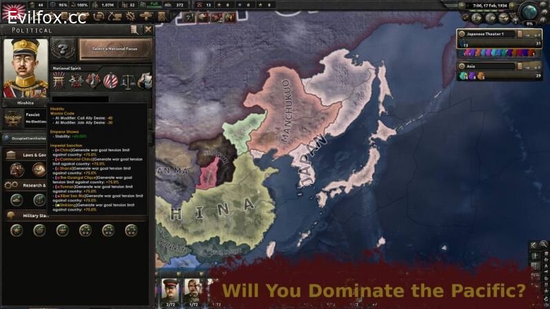 Now, the year is 1936. The British Empire has started a war to retake it’s colony of India, and Mussolini, the fascist dictator of Italy, is invading the Ethiopian lands. The US has gone full isolationism, and Japan has threatening ambitions on the Pacific Ocean. Peace is weak, and only a sparkle is needed to light up the flames of war once more.