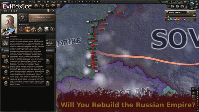 - Focus trees for Germany, France, the UK, Japan, Italy, Russia and the Soviet Union
